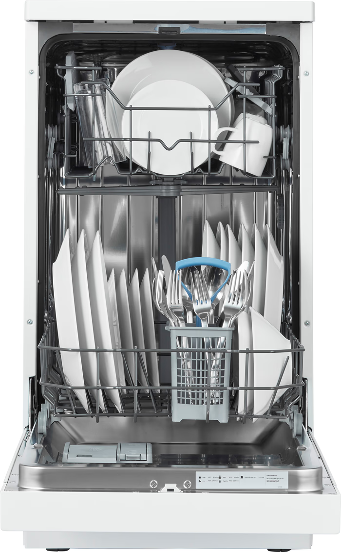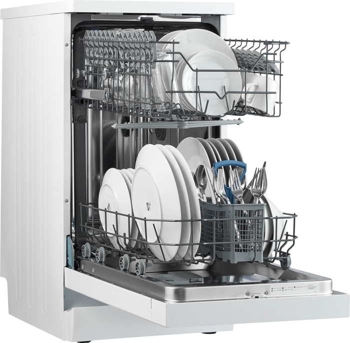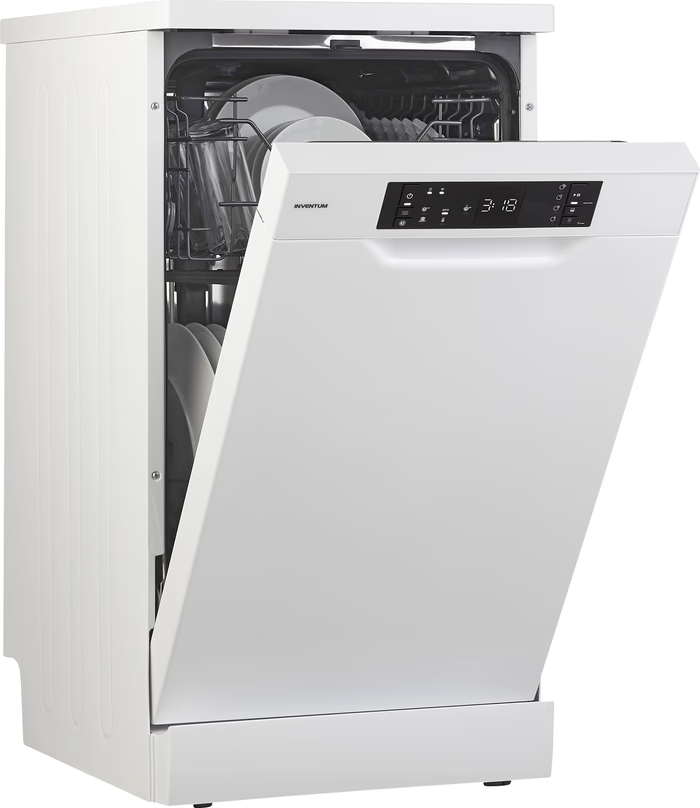Le lave-vaisselle autonome Inventum VVW4530AW s’intègre facilement dans une petite cuisine. Grâce à sa largeur de 45 centimètres, l’appareil prend peu de place. Il peut contenir 10 couverts de vaisselle sale. Vous placez vos casseroles, assiettes et planches à découper dans le panier inférieur. Vos couverts se placent dans le panier à couverts en bas et vos verres et tasses dans le panier supérieur. Vous lavez votre vaisselle avec l’un des 6 programmes de lavage. Vous avez besoin de verres et de tasses propres rapidement ? Optez alors pour le programme Rapide 30′ ou Rapide 50′. Si vous avez un plat à four avec des restes de lasagnes tenaces, utilisez le programme intensif. Vous récupérerez ainsi toute votre vaisselle propre dans le lave-vaisselle.